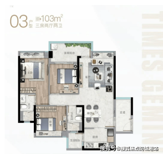 布局特点:户型方正,南北通透,全明空间设计,客厅宽敞明亮,面宽充足,采光通风效果极佳,客厅与餐厅相连,打造阔绰公共区域,适合家人聚会、朋友宴请;客厅连接超大景观阳台,视野开阔,可欣赏社区园林美景,阳台空间充足,可打造休闲区、观景区,提升居住体验;主卧奢阔舒适,配备独立卫生间、衣帽间和飘窗,私密性强,舒适度高,衣帽间可满足主人的衣物存放需求,飘窗可作为休闲、阅读的空间,提升居住品质;两个次卧空间宽敞,可作为儿童房、老人房或书房使用,空间充足,可放置各类家具,满足家庭不同需求;厨房采用U型设计,操作空间更充足,动线更合理,配备国际一线品牌厨电,烹饪体验更佳;公共卫生间干湿分离,布局合理,使用便捷,同时配备独立洗漱台,提升使用效率。